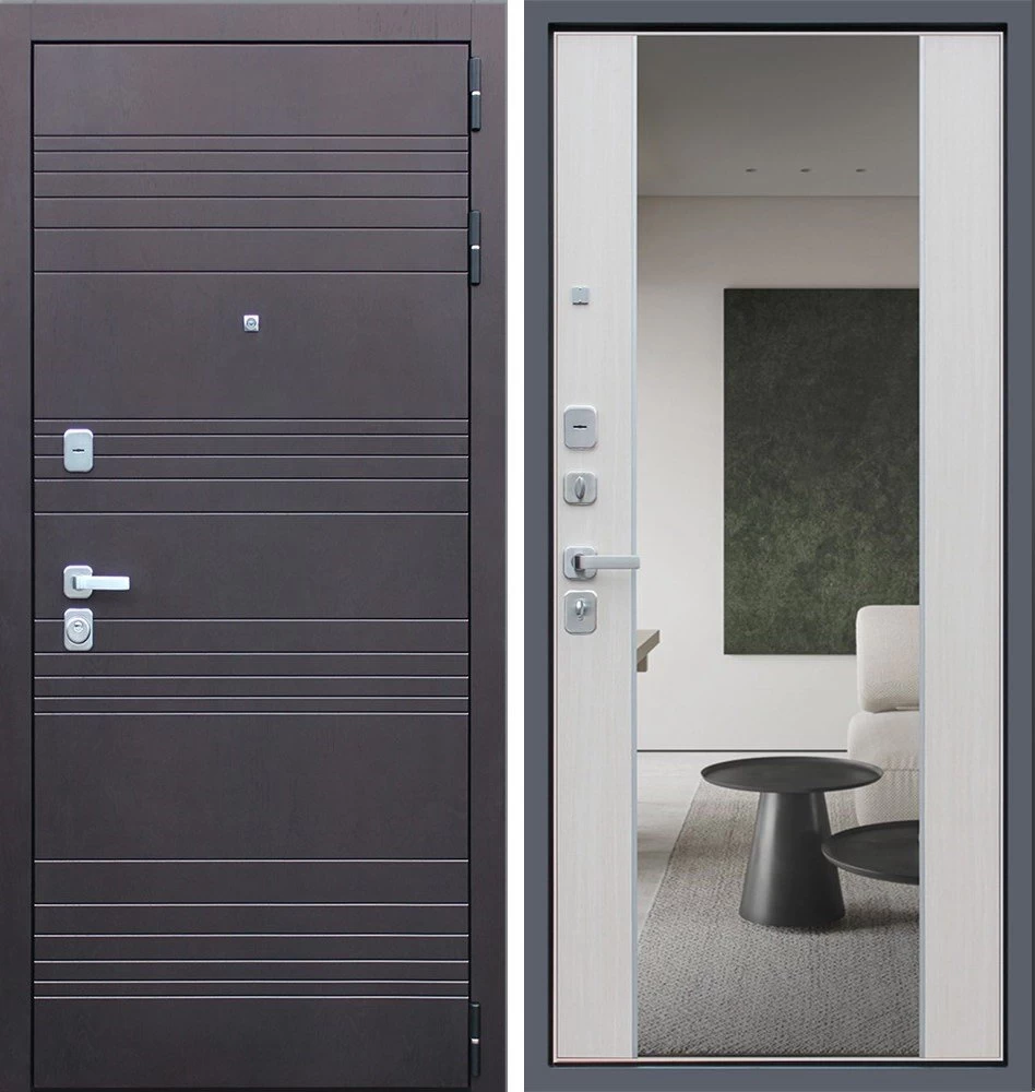Надежная входная Дверь Дуэт с зеркалом премиум класса по цене 46 937 руб. Большая толщина стали защитит от проникновения в ваш дом, квартиру или коттедж. Используется очень качественная фурнитура: замки, цилиндры, ручки, защелки. Покрытие и отделка двери изготовлено под внимательным контролем производителя. Дверь имеет долгий срок службы и гарантию.